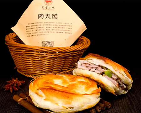 灵宝肉夹馍是河南省三门峡市灵宝市的传统小吃,属于豫菜系,由卤肉与特制卧炉烧饼组合而成。烧饼选用高筋面粉加碱面揉制,经醒发后烙烤成型,表面呈螺旋花纹,饼瓤分层薄如蝉翼,具有酥脆焦香、助消化的特点。卤肉以猪前腿肉为主料,配秘制料包与陈年卤汤焖煮十余小时,切片后佐以蒜末、青椒夹入烧饼。其制作技艺相传源于清光绪年间,慈禧太后西巡途经灵宝时御厨以卤肉汤油制饼夹肉,获赞誉后传承至今。