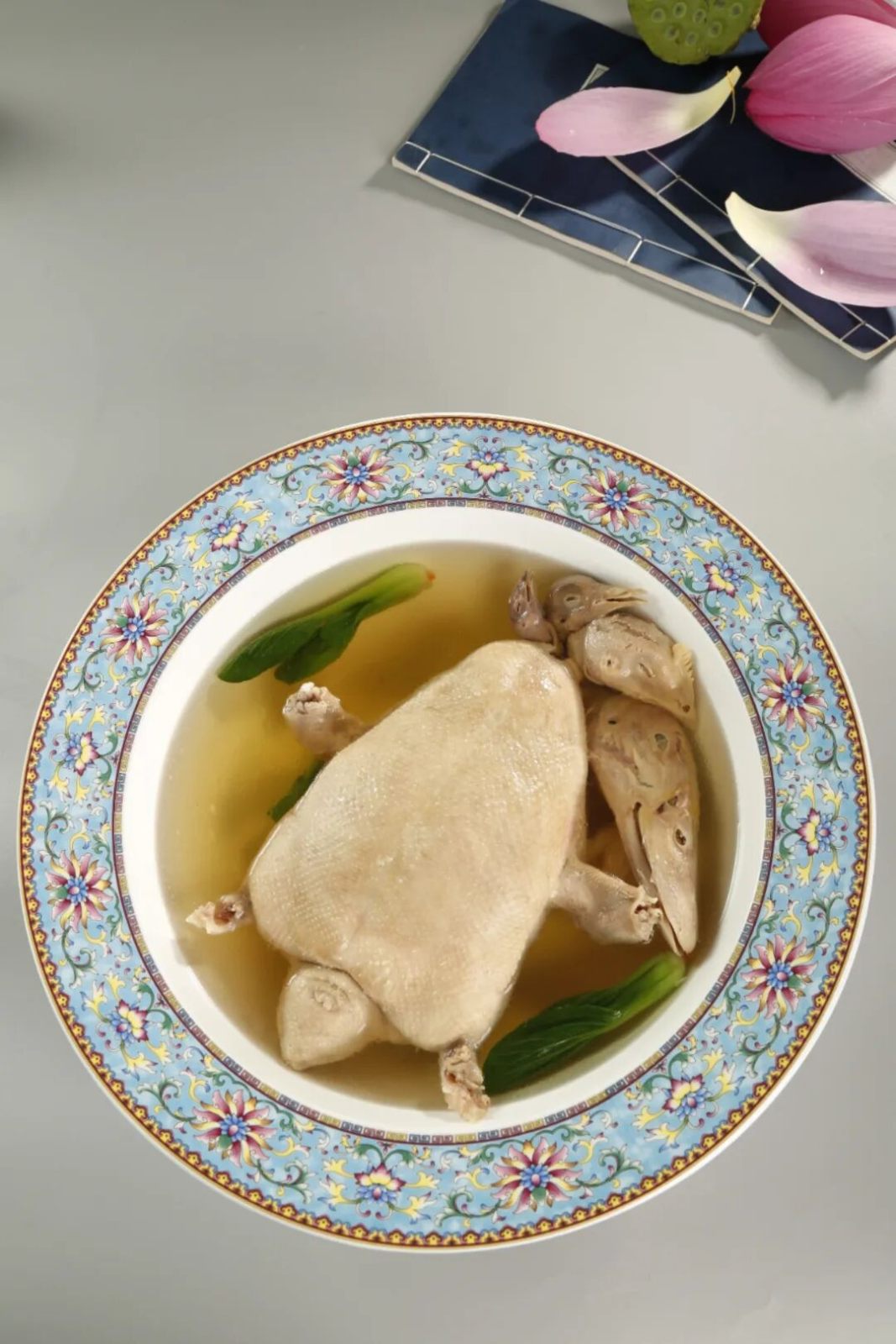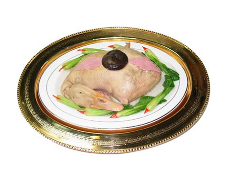 在开封,先上首尾完整的全鸭卧在汤盆中间,当人们吃完酥软的鸭肉,里面露出一支清香全鸡,鸡肉剥吃后,味道鲜美的全鸽又呈现在人们面前,最后在全鸽的肚子里是一只体态完整,腹中填满了海参、香菇、竹笋的鹌鹑。这道原汁原味,柔嫩润滑,色泽光亮、型整不散的菜,被称作豫菜里的一绝——套四宝。这道称绝的菜,绝就绝在四只层层相套的全禽,个个通体完整又皮酥肉烂就绝在从小鹌鹑到大鸭子相互义裹,却吃不出一根骨头来。