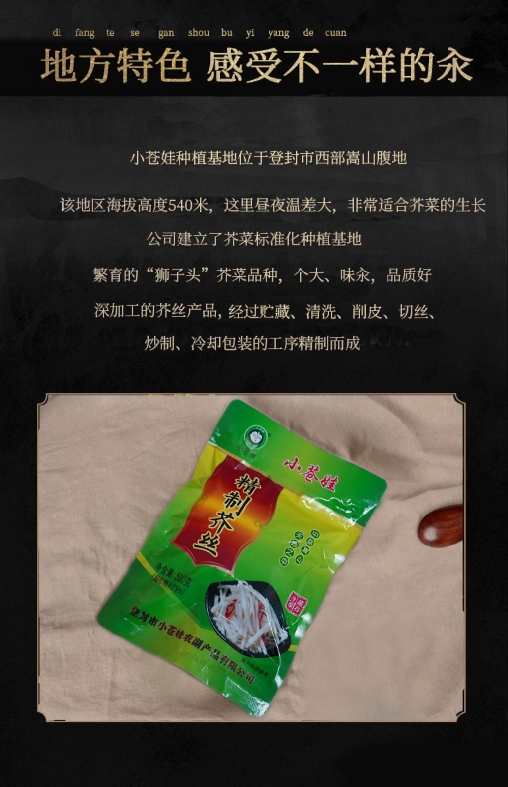 汆味呛鼻子芥菜丝登封小苍娃芥丝500g辣疙瘩丝介菜咸菜下饭菜