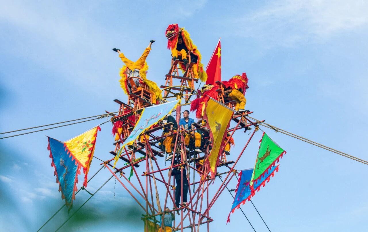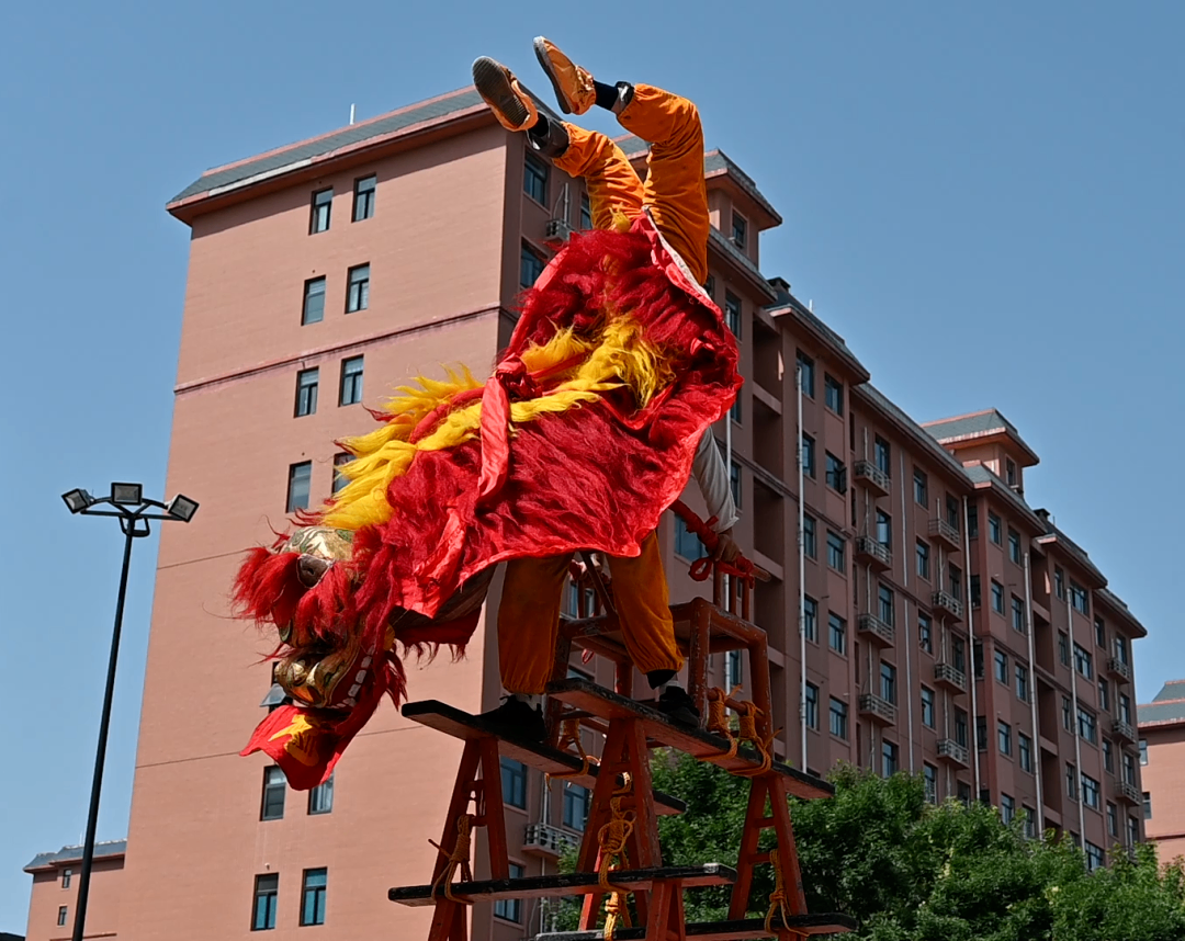 是扎根岁月的匠人,以执着守护技艺根脉。李金土的狮舞人生,是一部与传统对话的修行史。1971年,他拜崔西金为师研习地台套路,六年后再随杨西轩深耕高台绝技,在前辈的言传身教中,将地摊、桌上、高台的百余套动作烂熟于心。那些看似枯燥的基础训练,他一练就是半世纪:狮头举托的力度、摆首的角度,甚至鼓点与步法的契合度,都被打磨成肌肉记忆。正如他所说,“上高台的队员至少要练3年”,这份严苛背后,是对技艺的敬畏——毕竟在45 度倾斜的高空绳索上,每一个腾跃、回旋都容不得丝毫偏差,唯有千锤百炼,才能让“狮尾蹬空”“双跳独立”等绝技既惊险又稳当。这份扎根传统的执着,让小相狮舞从清代驱疫的民俗仪式,变成了承载历史记忆的艺术瑰宝。
