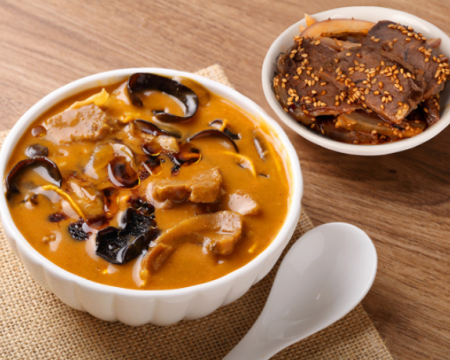 营养特征:以羊肉汤打底,具有益气补虚、温中暖下的作用,配以香辛料,辅以面筋、粉条、香菇、木耳等食材,营养丰富,同时开胃醒脾,特别是冬季,有发散风寒、驱寒暖胃之效果。